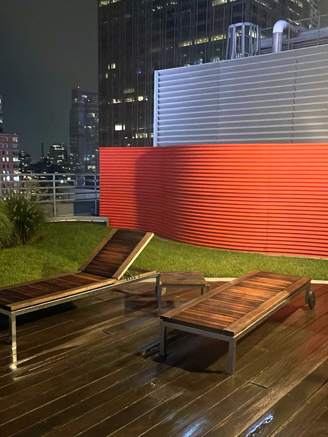 un centre de fitness baigné de soleil, une salle de conférence avec table de billard, une terrasse paysagée, un grand salon avec cuisine traiteur et des installations de golf virtuel. Le toit paysager offre une vue panoramique sur les toits de la ville.